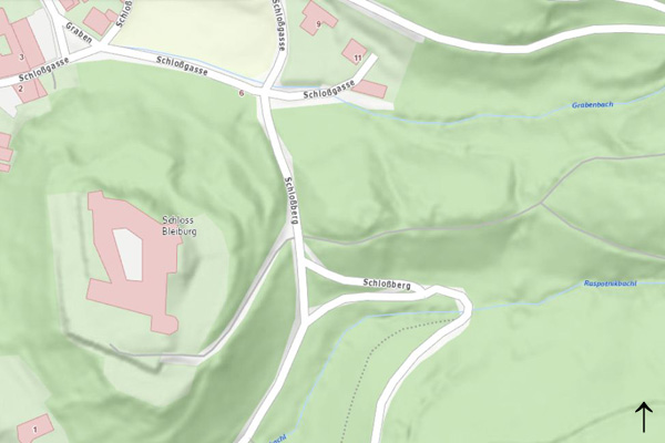 Das Vorwek am Schlossberg befindet sich unmittelbar östlich von Schloss Bleiburg. Anfahrt: B81 bis Bleiburg - Schlossberg/Schlossgasse Parken: am Straßenrand Zugang: Begehung möglich, im Sommer verwachsen lokalisiert: 19.09.2025