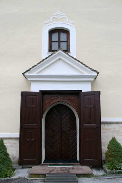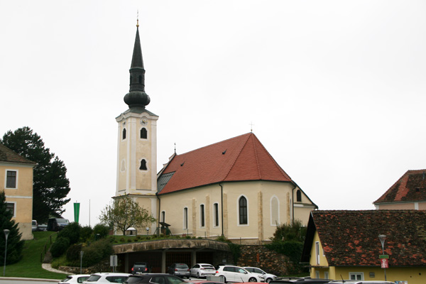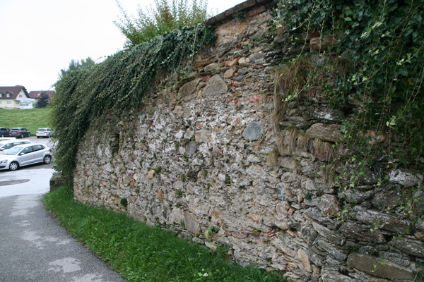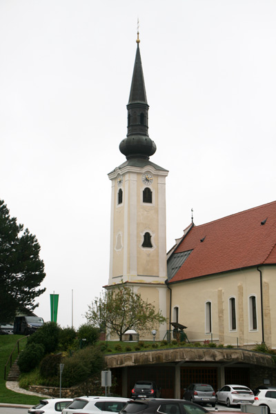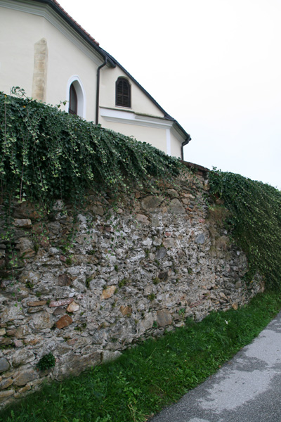 Die Kirche steht erhöht am südlichen Ortsrand, unweit der Wechsel-Bundesstraße B54. Abgesehen von einem Grabenrest sind keine Befestigungen mehr erkennbar. Die Kirche wurde 1532 von den Türken und 1707 durch die Kuruzzen zerstört. | |