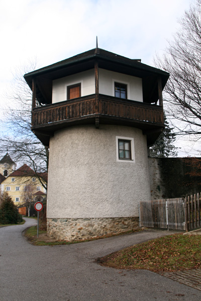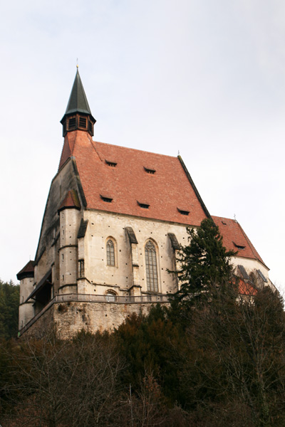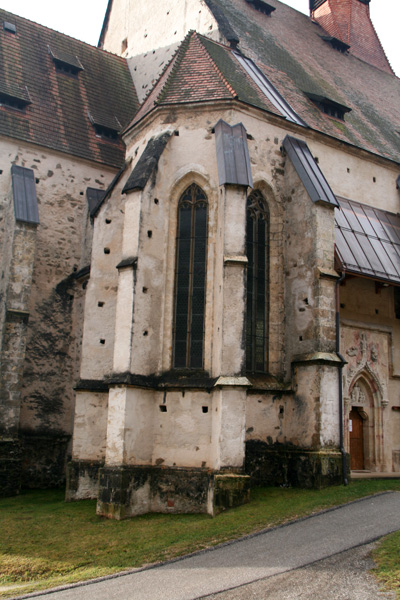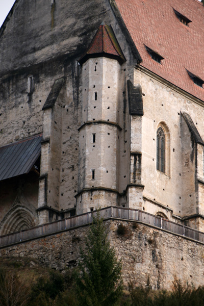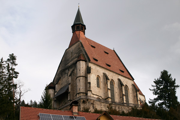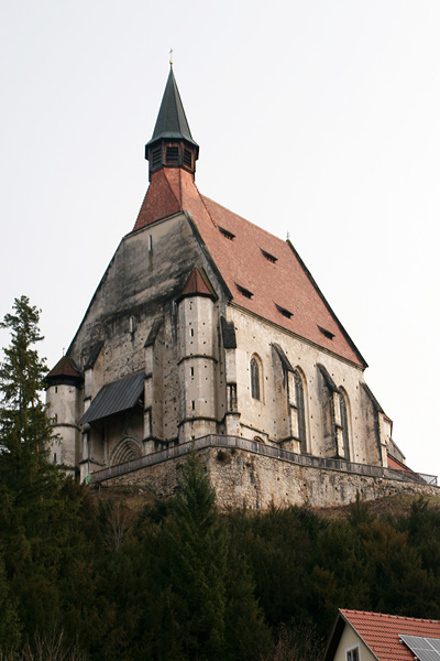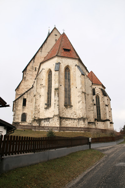 Die in stark erhöhter Lage stehende Kirche ist zu den wehrhaften Kirchen zu zählen, da an oberster Stelle des südwestlichen, zum Kirchweg gerichteten, Wendeltreppenturm eine Schlüssellochscharte eingebaut wurde. Weitere Wehreinrichtungen sind jedoch nicht vorhanden. | |