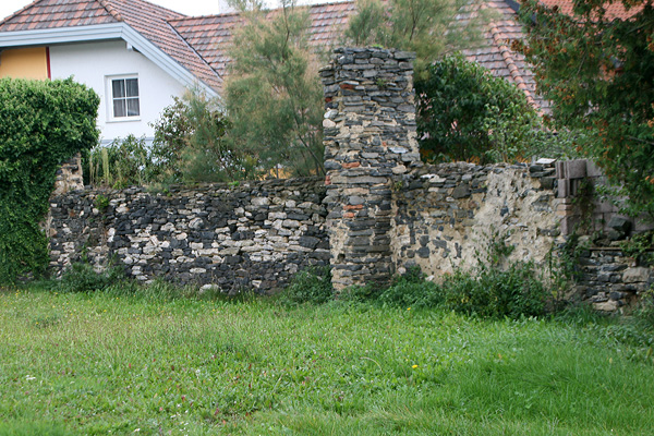 Geringe Mauerreste an höchster Stelle. Die vorgefundenen Mauerreste lassen eine Burgstelle vermuten, gesicherte Überlieferungen bzw. das Fehlen von Annäherungshindernissen lassen nur Vermutungen zu. | |