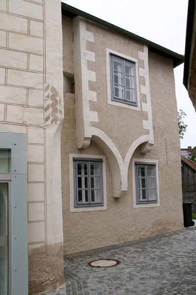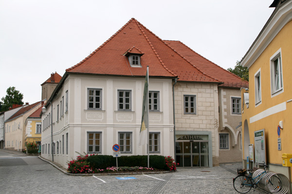 Der Ansitz (heutiges Rathaus) wurde Mitte des 16. Jahrhunderts ausgebaut. Das alte Rathaus (Jaidhofer Gasse Nr. 10), auch lokal als Hacklhof bekannt, wurde 1673 genannt und war eines der wenigen Häuser, die den Großbrand von 1820 überstanden hat. | |