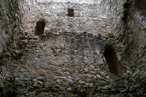 Wohnturm mit Hocheinstieg hoch, am Beginn des Arzwaldgrabens und des Übelbachtals. Zufahrt: Ca. 400 Meter westlich vom Schloß Waldstein in die Höhenstraße bis zum Fahrverbot. Parken: geringe Parkmöglichkeit bei der Fahrverbotstafel Weg: Dem Weg am orographisch linken Bachufer teils steil in Serpentinen bergauf bis zu einer Wiesenfläche. Von dort rechts auf den Hügel zum Hungerturm. Zugang: ganzjährig möglich zuletzt besucht: 04.04.2015