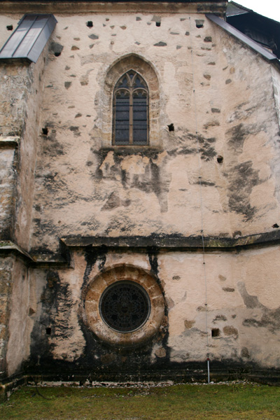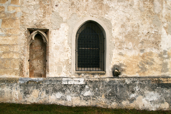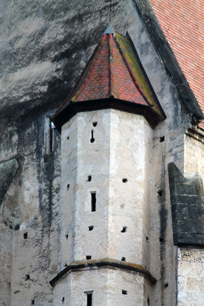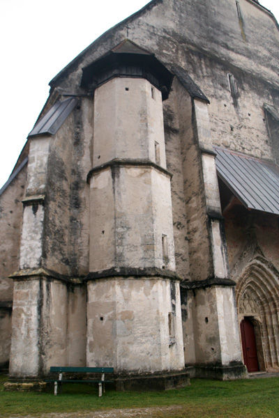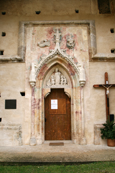 Die in stark erhöhter Lage stehende Kirche ist zu den wehrhaften Kirchen zu zählen, da an oberster Stelle des südwestlichen, zum Kirchweg gerichteten, Wendeltreppenturm eine Schlüssellochscharte eingebaut wurde. Weitere Wehreinrichtungen sind jedoch nicht vorhanden. | |