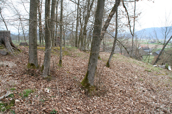 Unmittelbar südlich von Moos befindet sich der Burgstall der kleinen Minnenburg unter Wald. Erste Erwähnung der Burg findet sich im Jahr 1195, möglicherweise als Vorgängerbau der Burg Bleiburg. | |