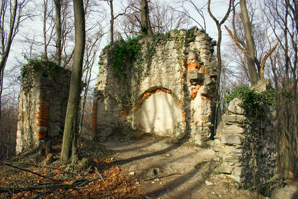 Antonius Eremitage: Alleinstehende Ruine oberhalb des kleinen Fischteichs.