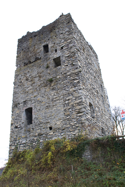 Ruine eines Wohnturms oberhalb von Götzis, oberhalb der Straße zur Kirche St. Arbogast. Anfahrt: bis ins Ortszentrum von Götzis, dann Abzweigung nach St. Arbogast. Parken: geringe Parkmöglichkeit am Beginn der Forststraße zur Ruine oder bei der Kirche St. Arbogast Weg: Kurzer Weg zur Ruine Zugang: ganzjährig möglich zuletzt besucht: 17.11.2015