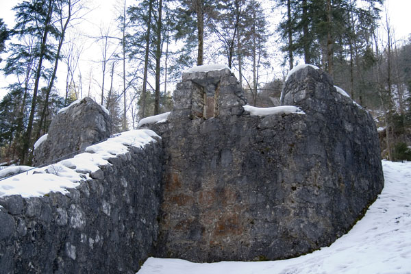 Grenzbefestigung zwischen Lofer (Salzburg) und Waidring (Tirol). Anfahrt: B178 bzw. B311 bis Lofer; Die Befestigung liegt westl. von Lofer - südlich, direkt an der Landstrasse nach Waidring. Parken: Unterhalb der Ruine befindet sich ein kleiner Parkplatz. Zugang: ganzjährig möglich zuletzt besucht: 04.03.2011