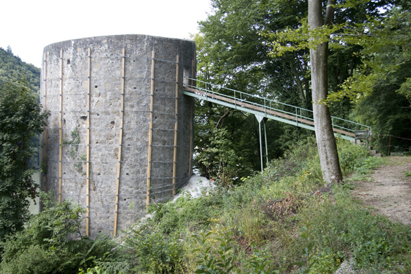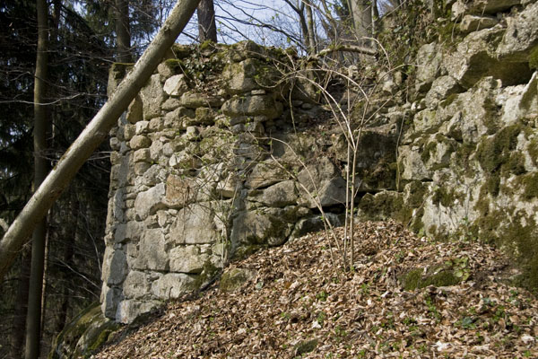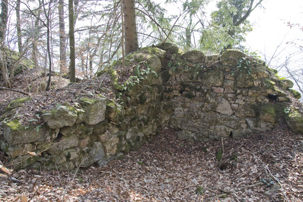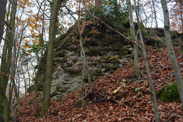 Turmruine nach Sicherungsarbeiten nach einem Mauerabgang im Mai 2013. Betreten des Turmes ist derzeit nicht gestattet. (Stand: September 2013) | |