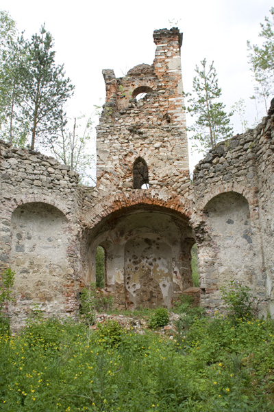 Stark verfallene Kirchenruine am Truppenübungsplatz Allentsteig. | |